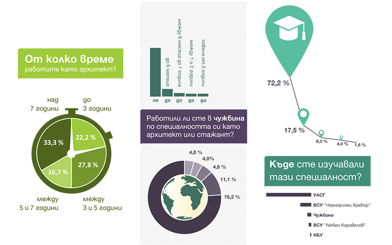 Проучването Нагласите и мотивацията на архитектите за професионална реализация е на база 773 запитани архитекти в София и страната.