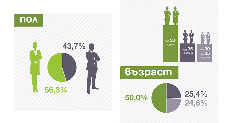 Kато цяло гилдията на архитектите се подмладява – тенденция, която се наблюдава и в Европа. Средната възраст на практикуващите професията у нас е под 30 години (50.6% са с опит по-малко от 5 години, а ¼ са между 30 и 35 години). 56.3% са жени, за сметка на мъжете, които са 43,7%. За сравнение в Европа това е по-скоро мъжка професия и съотношението е 63% мъже и 28% жени според изследването на Eвропейския съвет на архитектите. https://www.ace-cae.eu