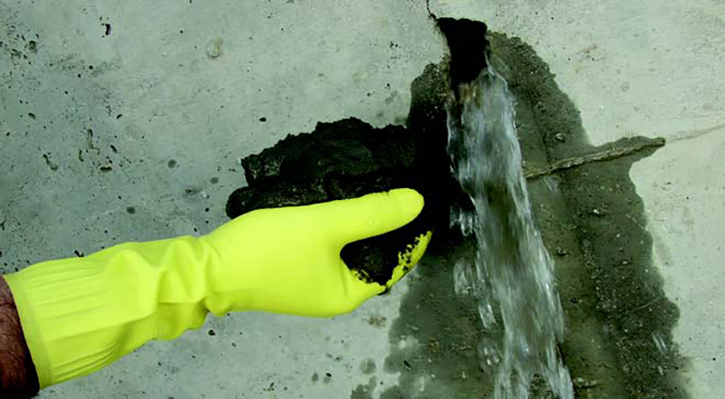 – Осигурява директно уплътняване на малки течове през пукнатини, дупки и отвори в бетони;