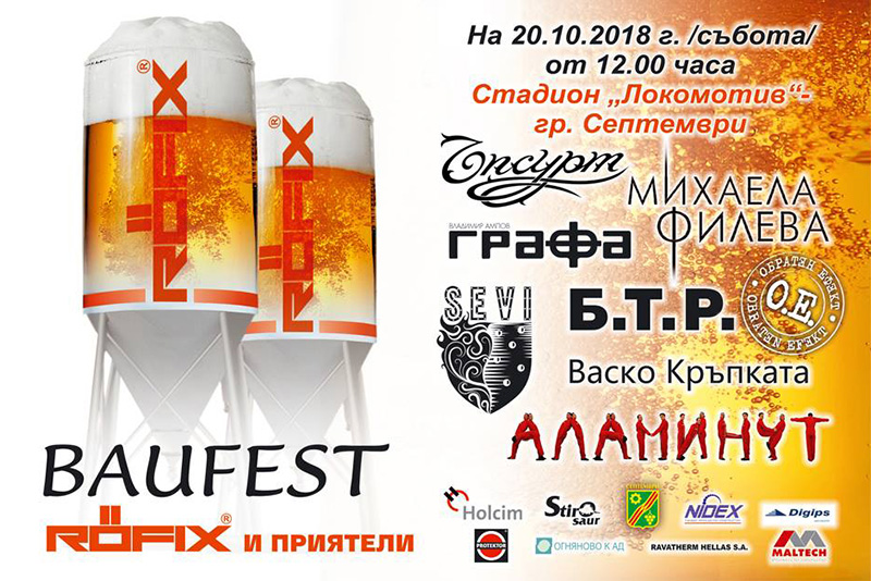 На 20 октомври от 12:00 на стадион „Локомотив“ в град Септември Röfix организира „Baufest Röfix и приятели“. Фестът е част от платформата на Röfix „Лигата на майсторите“.