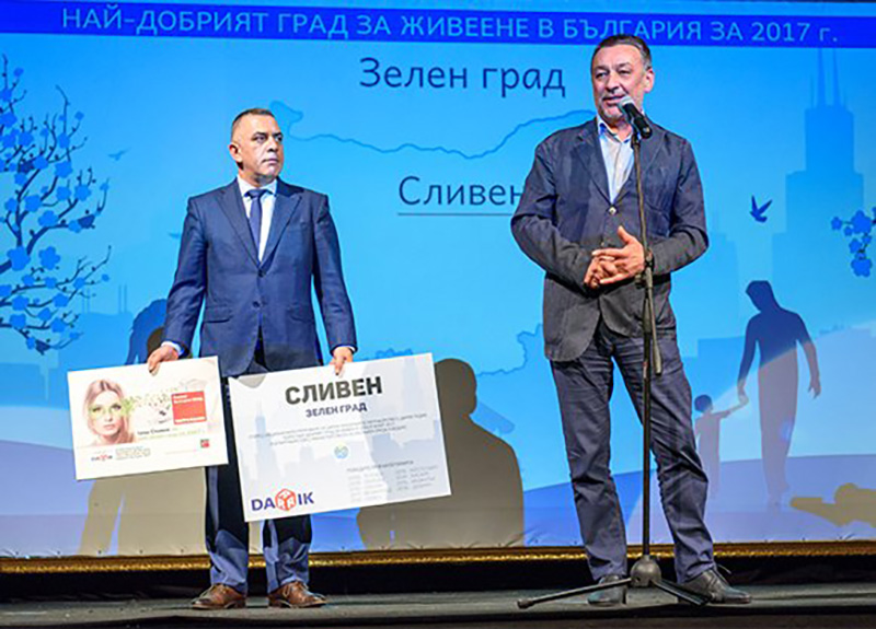 На тържествена церемония, в присъствието на много кметове, министри и журналисти, Николай Бъчваров – управител на „Баумит България“ ЕООД, връчи на Стефан Радев – кмет на гр. Сливен, грамота за най-зелен град на България за 2017 г. Сливен спечели наградата на Дарик радио за най-зелен град на България в рамките на ежегодния конкурс „Кой е най-добрият град за живеене?“. Тазгодишният конкурс на Дарик радио бе осъществен с партньорството на Баумит България. В краткото си слово Николай Бъчваров подчерта радостта си, че връчва точно тази награда, защото нейната идея пряко кореспондира със стремежа на Баумит да предлага продукти, които допринасят за здравословния начин на обитаване.