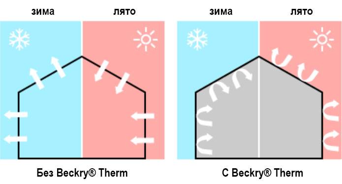 В сравнение с други системи за термообработка, Beckry®Therm поддържа условия по-хладни през лятото и по-топло през зимата.
