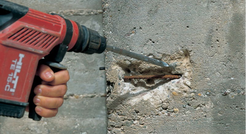 Стъпка 1 – механично отстраняване на повредени части на бетона.