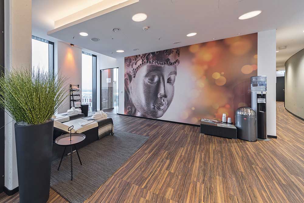 В спа и уелнес зоните дизайнерската подова настилка „Altro Ensemble / M 500“ с автентичен дървесен декор създава спокойна и стилна атмосфера. С вграденото си намаляване на ударния шум до 15 dB настилката допринася за приятно тиха среда, в която гостите могат да се отпуснат. Ниското тегло улеснява не само транспортирането, но и монтажа. Общата дебелина на дизайнерската подова настилка от 2,6 мм предлага допълнителен комфорт при ходене. С износващ слой от 0,55 мм подът е толкова ефективно защитен, че Altro посочва експлоатационен живот от 15 години. Повърхността е лесна за почистване и хигиенична.