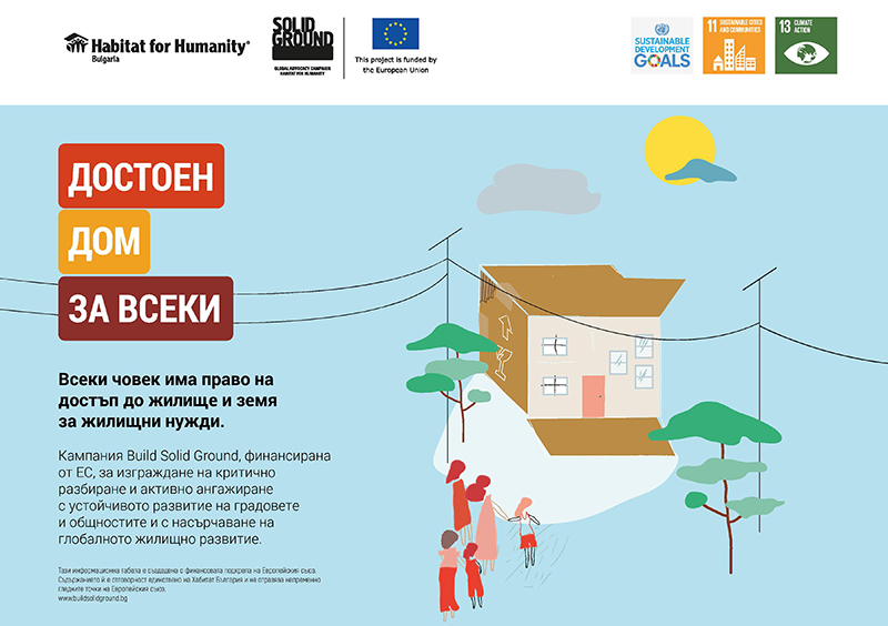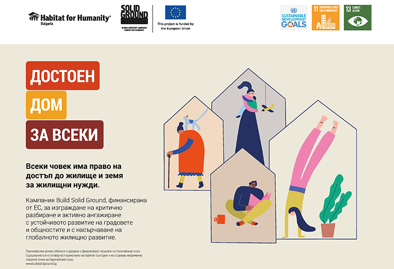 Тези проблеми са във фокуса на Build Solid Ground, новата глобална кампания за достъп до жилище и жилищни права на международната организация Habitat for Humanity International. Застъпническата кампания, която преминава под мотото, че всеки човек заслужава да има достоен дом и да се чувства защитен от заплахи към собствеността си, вече работи в над 30 страни по света.