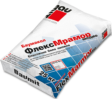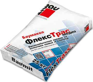 Лепилата, които Баумит България предлага за тези условия, са Баумакол ФлексМрамор медио (с клас С2ТЕ S1) и Баумакол ФлексТрас медио (с клас С2Т S1). Означението „медио” е за да подчертае, че те могат да се прилагат за среднослойно лепене. Както се вижда, и двата продукта имат сходни показатели по отношение на стандарта, с тази разлика, че първото от тях има малко по-дълго отворено време). Какво ги отличава едно от друго?
