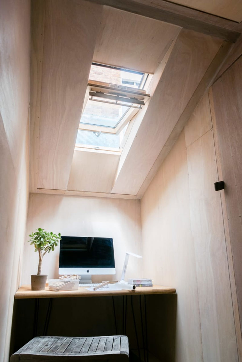 Новата структура възниква на мястото на плевня, разположена в оранжерията на селска къща близо до Лондон. Офис сградата е предназначена за двама души. За излъчване на слънчева светлина той използва големи прозорци за врати, интегрирани в покрива. Стените вътре са облицовани с шперплат.