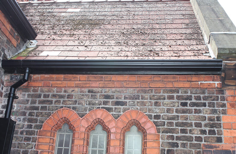 Над 150 метра от алуминиевите улуци на Guttercrest са заменили амортизирания оригинален чугунен улук, заобикалящ църковния покрив. Традиционно изглеждащата им форма е вдъхновена от чугунени отливки от 19-ти век, но предлага предимствата на алуминия, който е лек, лесен за инсталиране и поддръжка, и гарантира дълготрайна употреба. Новият улук е свързан с над 42 метра RW2T традиционни алуминиеви водосточни тръби (75 мм), прахово боядисани в черно.