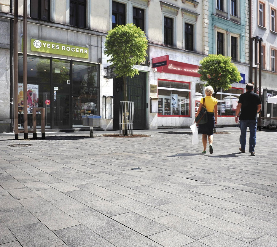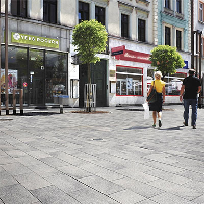 Класическата визия на „стария европейски град“, оформена от плочи с голям формат и сгради с красиви гипсови орнаменти, каменни основи и т.н., лесно поглъща плочите Umbriano® в цвят светъл или тъмен гранит, и ги превръща в част от онази симбиоза, която създава усещането за хармония и напомня за класическата епоха. Без да се натрапва, оригиналната картина на Umbriano®, привлича погледа и дискретно го насочва към архитектурните елементи по фасадите, акцентите и детайлите, които изпъкват на този класически фон.