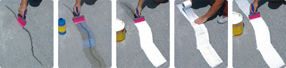 Първоначално се фиксират съществуващите пукнатини върху бетон, мозайка или старата хидроизолация и се почистват много добре от прах и други замърсители. След това сухата повърхност се грундира по дължината на пукнатината с ISO-PRIMER, с ширина около 12 см., след като грунда изсъхне следва локално мазане с четка на еластичната хидроизолация ISOFLEX. Докато ISOFLEX е още пресен се полага армировъчна стъклофибърна или полиестерна лента и след като първият слой изсъхне се нанасят два последователни слоя ISOFLEX.