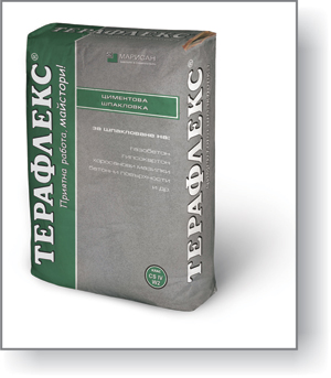 ТЕРАФЛЕКС® СИВА ЦИМЕНТОВА ШПАКЛОВКА е продукт на циментова основа с хидравлично свързващи вещества, фини минерални пълнители и прахообразни полимери. Предназначена е за външна и вътрешна употреба, за еластично шпакловане върху бетон, газобетон, плоскости от гипсокартон, цименто-пясъчни замазки, хоросанови и всякакви видове циментови мазилки и др.