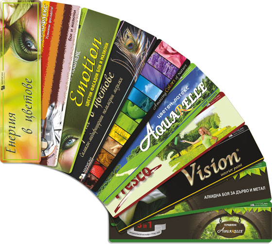 ЦВЕТОВИ БИБЛИОТЕКИ и ЦВЕТОВИ КАРТЕЛИ се явяват важна част от цялостната система за цветово планиране – ENERGY IN COLORS от МАРИСАН. Тя представлява абсолютно ориентирано към практиката, високоефективно средство за сигурно, професионално и креативно планиране на цвета, в неговите най-фини нюанси. Системата за цветно планиране, заедно с нейните нови функционалности, окрупнява безкрайния цветови свят – неговата структура и богатство на нюансите, в свободна и удобна форма, само на клик разстояние. Тонирането предоставя на всеки специалист, било то архитект, дизайнер или проектант, забележителна свобода в процеса на цветово проектиране. Чрез ENERGY IN COLORS могат да се задоволят дори и най-специфичните желания за цветови комбинации. Професионализмът, стоящ зад разработването на системата, предоставя сигурност и лесна ориентация при избора на цвят, гарантирани от приложните норми на цветометрията. Спецификата на тониращата система обезпечава дългогодишния живот и стабилността на цвета.