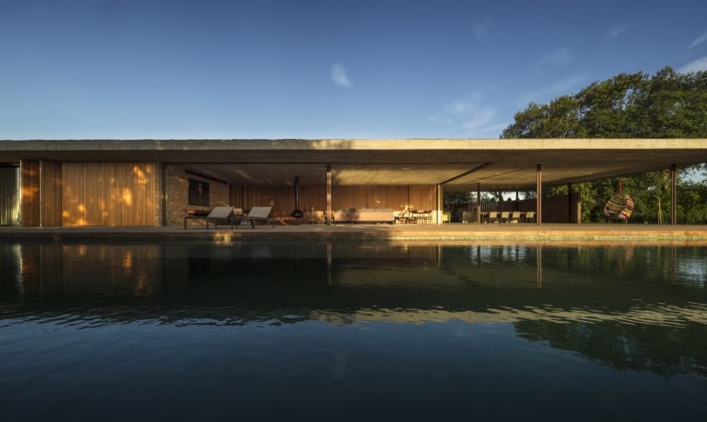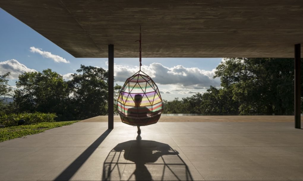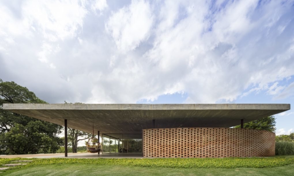 Зелените покриви са много актуална тенденция в световната архитектура, както показва и този пример от Бразилия. Масивен озеленен покрив от бетон едновременно изолира къщата от силното бразилско слънце, и осигурява чиста енергия за домакинството чрез соларни панели. Проектът е на Studio MK27 с водещ архитект Марсио Коган, който е създал дома, наречен Planar House, за семейство с три деца.