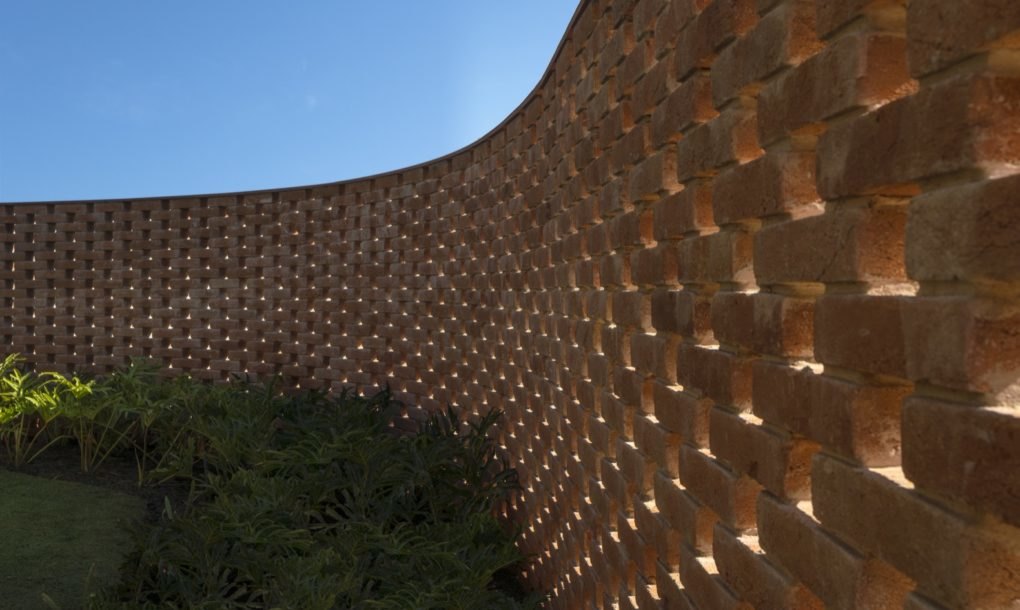 Домът е вмъкнат като сандвич между две бетонни плочи, като горната плоча служи като изолиращ зелен похлупак в горещините. В интериора откритият бетон е съчетан с дърво, което дава усещане за топлина. Извитата тухлена стена, която опасва задната част на къщата, е реверанс към местната архитектура, като осигурява дискретност и добро проветряване.