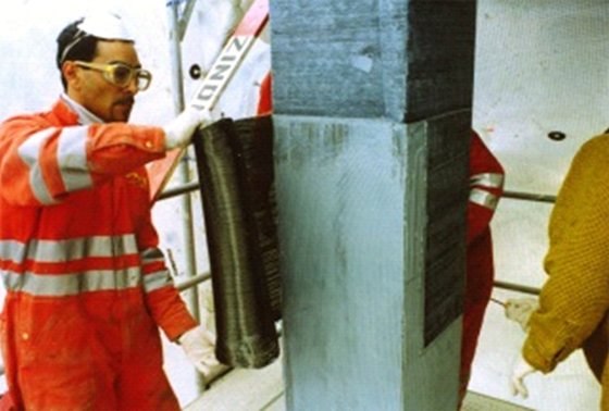За ограничаване на бетон при колони и усилване на структури от бетон с ниска якост, тухла, камък и дърво
