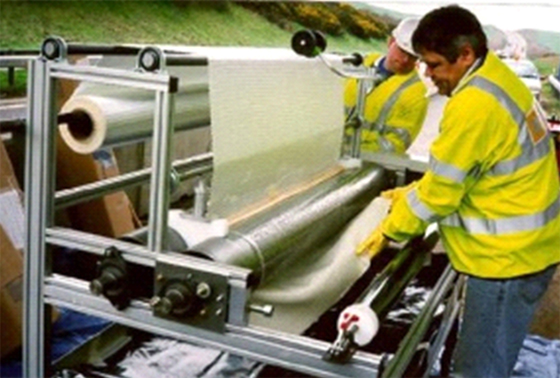 – Тъканта се импрегнира с пластмасов валяк, докато влакната напълно се напоят със смола;