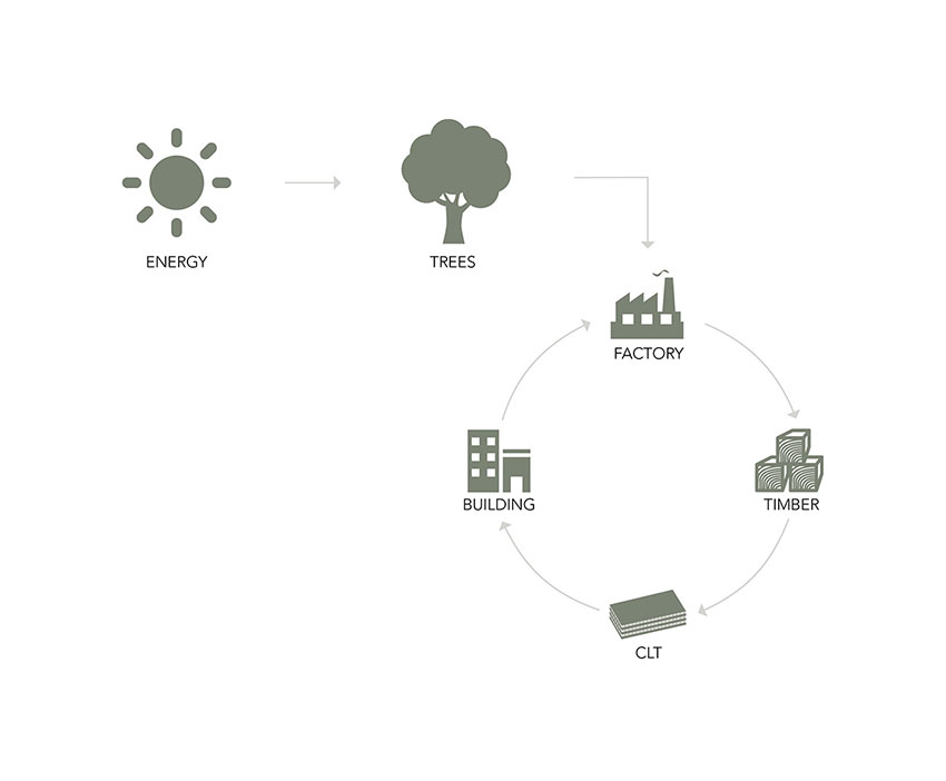 „Ключов елемент на проекта е да се промотира иновативната употреба на дървото и на инженерната дървесна технология, използвана в сградата. Кулата използва масивни дървени панели не само като основен структурен елемент, но и фасадни дървени панели.“ обясни Пенда.