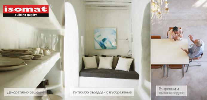 Дълбоко вкоренени в средиземноморската архитектура, микроциментовите продукти продължават да се усъвършенстват и играят водеща роля в модерното строителство. Ето защо ISOMAT е разработила широка продуктова гама от декоративни покрития, имащи за цел да осигурят устойчиви решения, дори при най-взискателните приложения. Микроциментовите продукти на ISOMAT осигуряват дълготраен, високо естетичен и индивидуален резултат, отлична водоустойчивост, а също така много висока износоустойчивост на крайното покритие върху повърхностите.