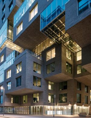 Конструкцията на сградата е изпълнена като стоманена рамка, облечена в тухлена обвивка, която покрива всички тераси, стени и тавани. Това обличане на сградата с тухла отговаря на норвежките стандартни за придаване на човешки мащаб на сградите. Постройката изглежда като скала и има силен силует.