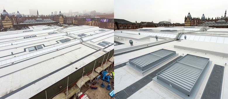 Освен това шест покривни прозореца с дължина над 51 метра са заменени с покривните прозорци SarnaLites, разположени в редове близо един до друг, за да може пазарът да продължи да се възползва от естествената дневна светлина. Тази част от ремонта е извършена през нощта, за да се ограничи всякакво прекъсване на работата на пазара. След приключването на проекта и успешната окончателна проверка, е издадена и гаранция Sarnafil Plus.