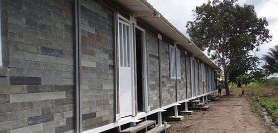 Миналата година, компанията успя да изгради 8 къщи и временни общежития за 42 колумбийски семейства. Експертите не са още докладвали дали блоковете са били подложени на проверка за отделяне на опасни вещества под влиянието на слънцето.