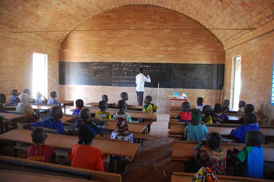 Нискобюджетно училище в Африка построено от калени тухли, правени на място