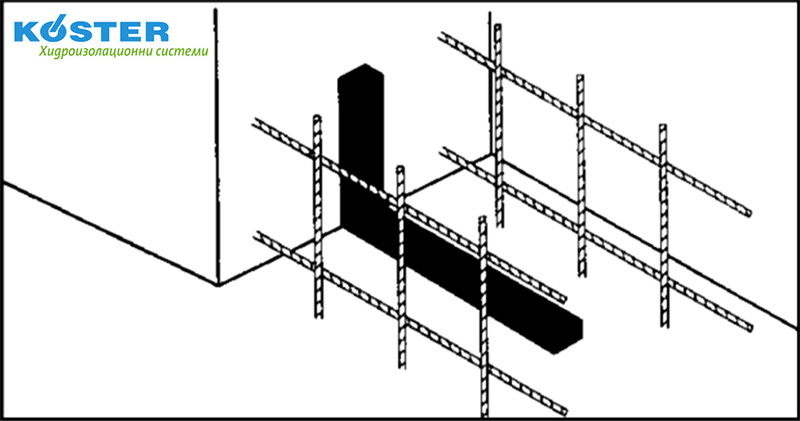Субстратът, естествено, трябва да бъде чист, да не съдържа свободни частици или възпрепятстващи свързването материали и да бъде колкото е възможно по-гладък. Кьостер Набъбващата лента трябва да се намира в непрекъснат контакт със субстрата. Инсталирайте лентата на дължини 5 м (това е стандартната ù доставна дължина) в средата на работната фуга. Пристягайте Кьостер Набъбващата лента на всеки 35 см или в три точки на метър. Краищата просто се притискат плътно един към друг. Когато наливате бетона съблюдавайте стриктно правилата за бетонови работи, вкл. височината на изливане и уплътняване.