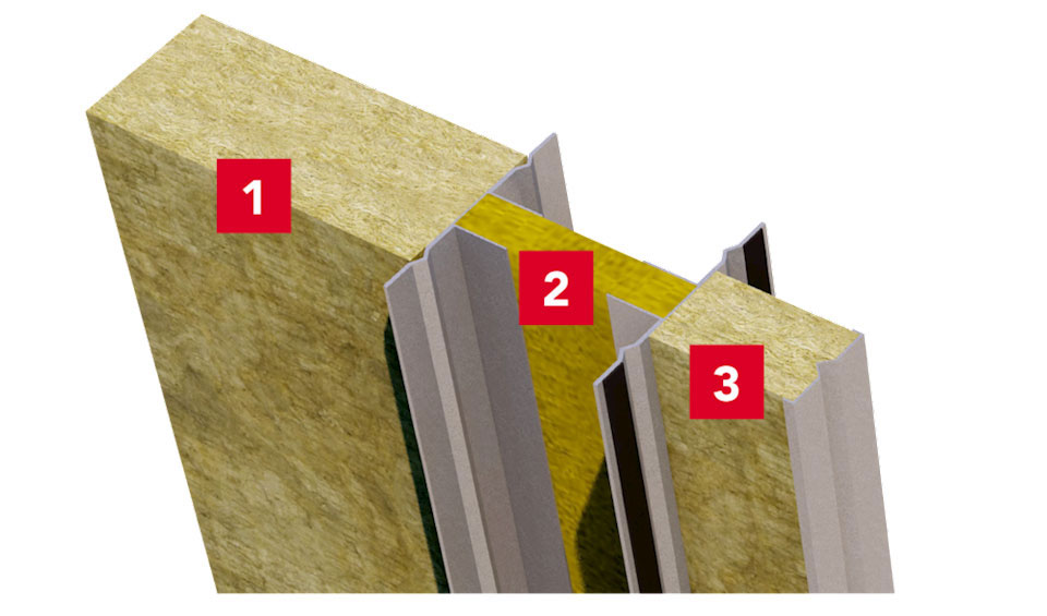 Ключовият елемент на концепцията Rockzero е носеща колона от каменна вата, подсилена със стомана. Колоната Rockzero съдържа общо 3 зони: структурна зона в центъра (2), сервизна кухина за електрически и водопроводни инсталации от вътрешната страна (3), и основна изолационна зона отвън (1). Всяка зона прекъсва топлинните мостове, създадени от стоманените елементи, осигурявайки оптимална и последователна енергийна ефективност за стената Rockzero.