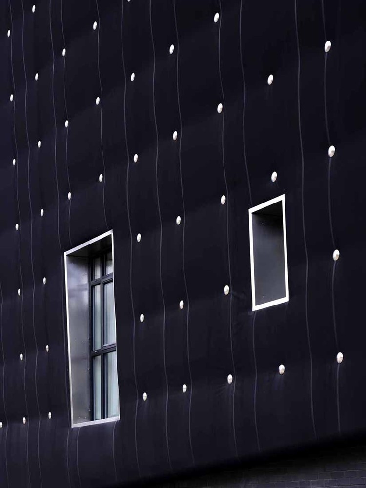 Едно от най-уникалните приложения на каучука, шумоизолацията, е използвано в музикалното студио на университета в Шефилд, проектирано от Jefferson Sheard Architects, с фасада от черен каучук. Освен намаляването на шума каучуковата фасада е устойчива на атмосферни влияния, има висока пожароустойчивост, ниска токсичност при димене и дори може да се рециклира без особени затруднения.