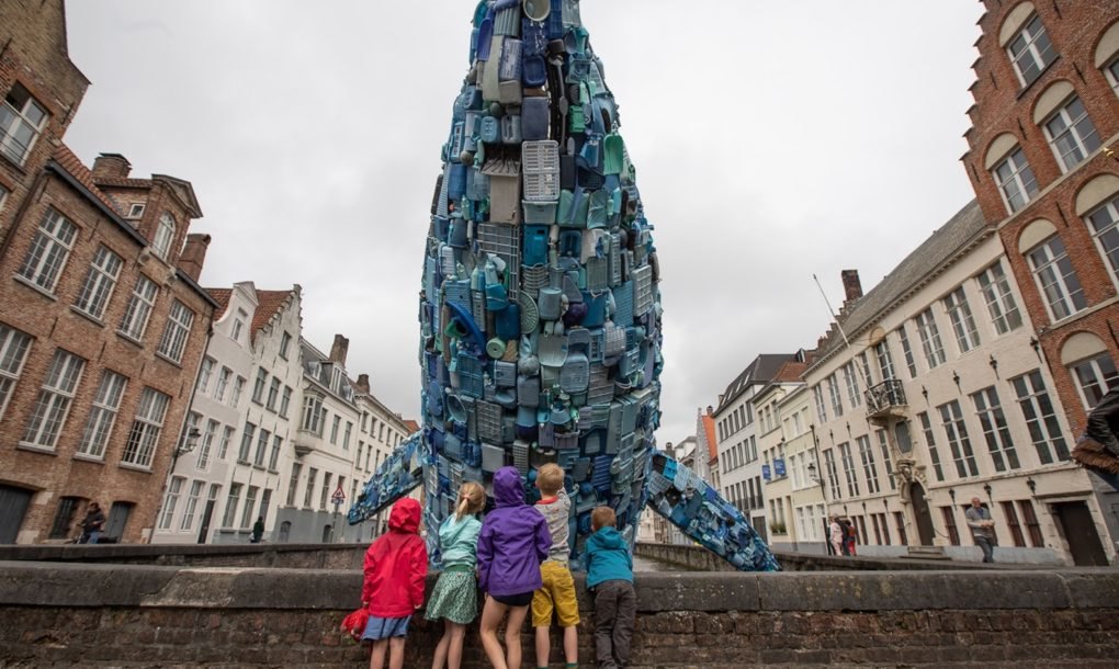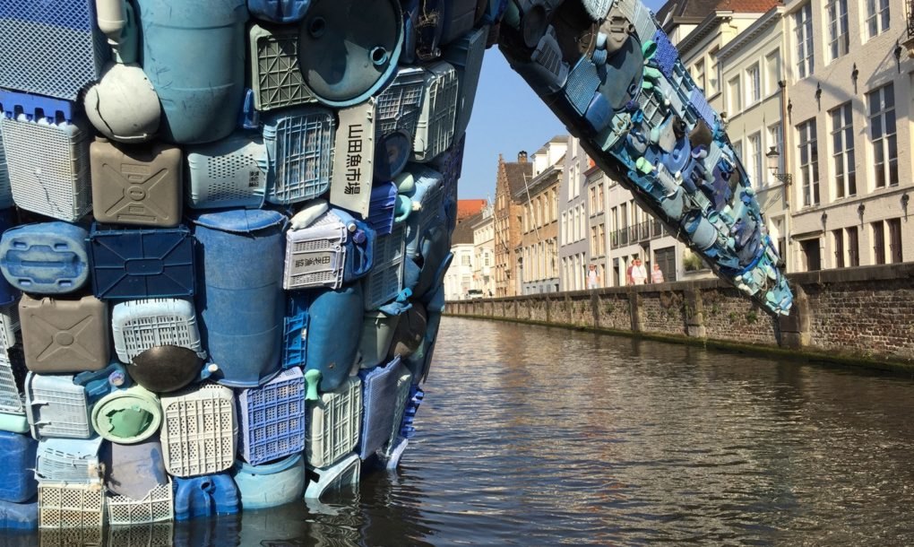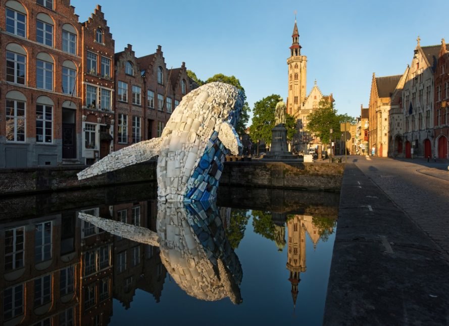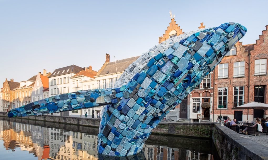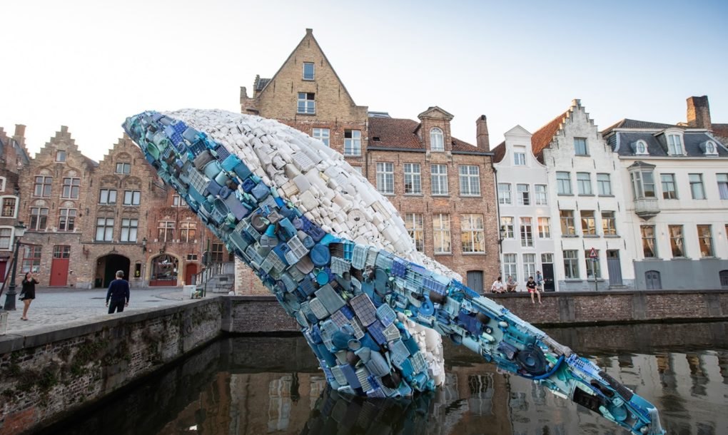 Пет тона пластмасови отпадъци, извадени от океана, са се превърнали в „Брюжкия кит“ – гигантска скулптура, която напомня за огромното количество боклук, плаващ в световния океан. Проектираната от Джейсън Климоски и Лесли Чанг от мултидисциплинарната практика „StudioKCA“ екологична творба е създадена за артистичното Триенале в Брюж 2018. Китът, наричан още „Небостъргачът“ се подава от канал срещу емблематичната за града статуя на художника Ян Ван Ейк.