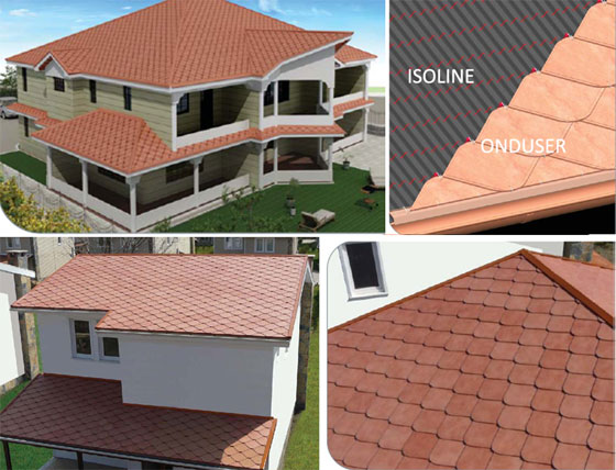 Това е една система, която успешно се наложи в България. Освен познатите й приложения (с традиционни и “турски” керемиди), вече можем да я предложим и с два нови завършващи продукта: покривни плочи “Ардоаз” и “Ондусер”. Най-общо казано същността на системата се състои във влагането на вълнообразни листове под завършващия покривен продукт.
