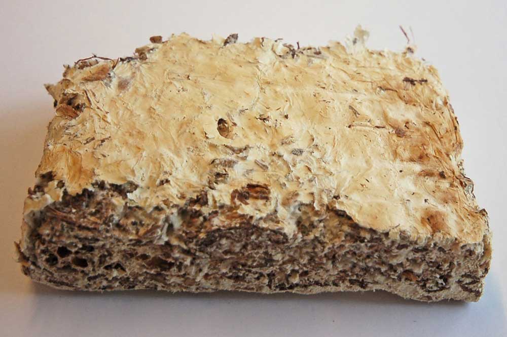 Ето как се получава Greensulate: Смес от вода, отпадъчни земеделски продукти и водороден пероксид се изсипват във форми и след това се инжектират със спори на живи дървесни гъби. Водородният пероксид се използва за предотвратяване на растежа на други микроорганизми в материала. Поставени в тъмна среда, спорите на гъбите започват да растат, смилат органичните отпадъци като храна и създават хиляди клетъчни нишки. В рамките на една седмица се развива напълно изолиращ панел с дебелина около 2,5 сантиметра. След това се изсушава, за да се предотврати растежа на гъбите и риска от развитие на мухъл.