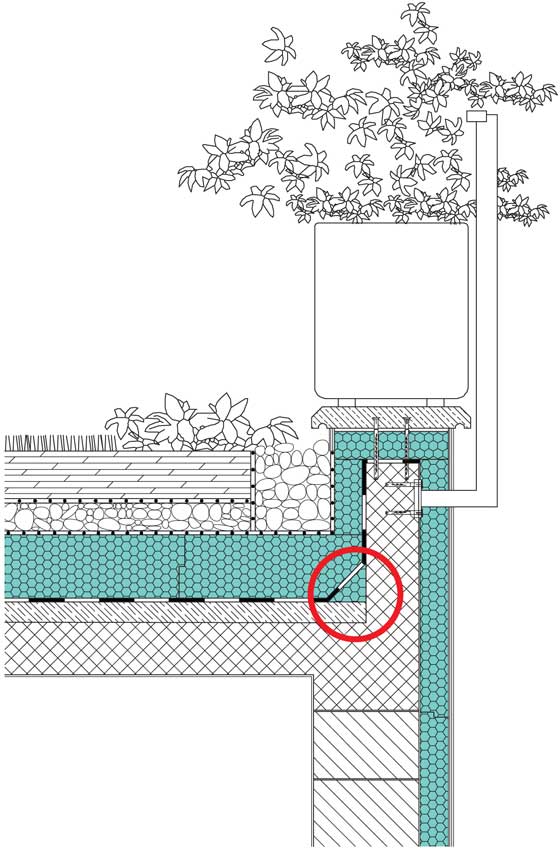Здравината на конструкцията в тези части трябва да се осигури, както и да се осъществи плавен преход между вертикалните и хоризонталните повърхности. Обшивките трябва да са разположени върху кривина под 45° спрямо двете повърхности, за да намали риска от напукване, което се получава когато повърхностите са под прав ъгъл. Водоплътността и намаляването на риска от пропускане на вода в тези зони се гарантира от избягването на обшивки в зоните с най-ниска кота на покрива и правилното изпълнение на покривните наклони. Предизвикателство за специалистите е проектирането и оформянето на детайли на нови и съществуващи покриви.