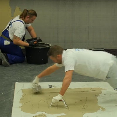 Екипът на Mapei Bulgaria показва стъпките при полагането на широкоформатни гранитогресни плочи.