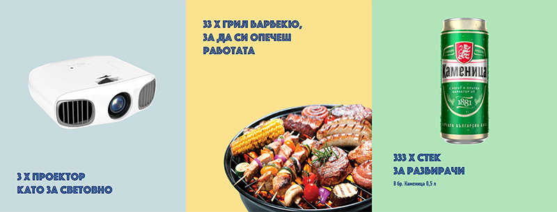 Включи се в играта за много награди – 3x проектор за стена, 33x грил барбекю и 333x стек 8 бр. Каменица 0,5 л.