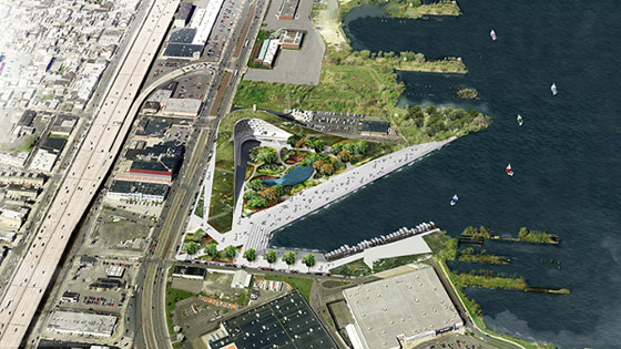 Дизайнерите са намерили място във Филаделфия, където голямо парче празна земя се намира в непосредствена близост до бреговата линия и до магистрала, която разделя земята от останалата част на града. Земята в непосредствена близост до водата ще бъде превърната в парк. Той ще действа като защита срещу наводнения и ще създава привлекателно място за отдих. Цялата сграда ще бъде наклонена и покрита с растителност.