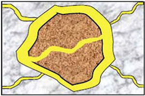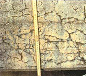 Разширителният ефект генерира експанзивни сили във втвърдения бетон. Типичните форми на увреждане от ASR се наблюдават под формата на фини напуквания, проникващи дълбоко в бетонната конструкция.