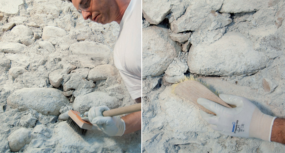 Зидарията се почиства много добре с телена четка или метла. Така се осигурява товароносима основа.