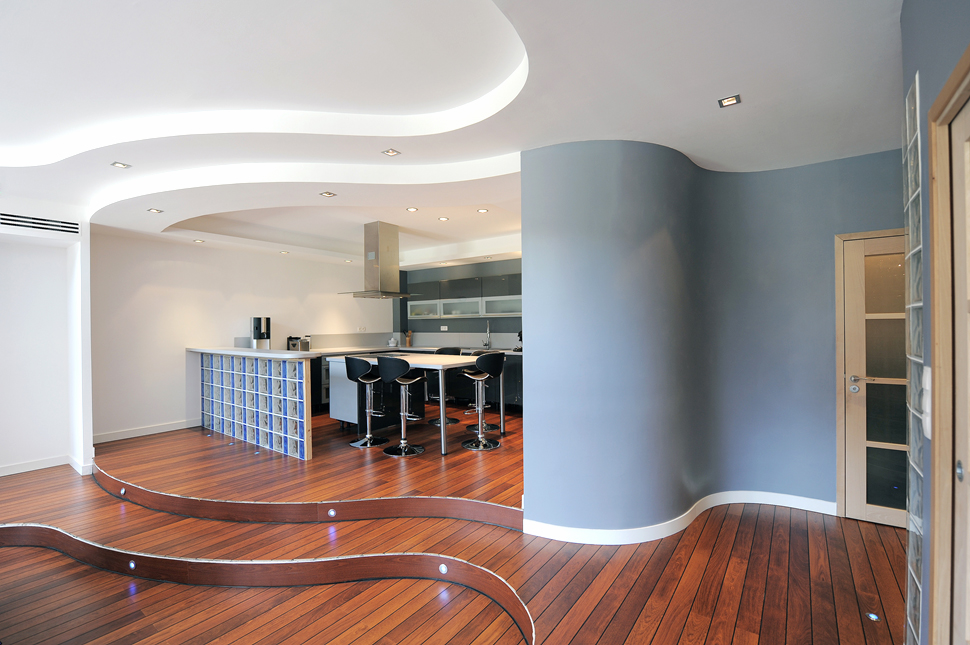Всеки, който иска да изгражда по модерен начин и да проектира пространствата с минимални усилия, има необходимост от съвременни строителни материали и системи, които могат да бъдат гъвкаво оформени. Иновативни продукти, на гипсова основа, осигуряват свеж бриз в интериорния дизайн. Прилагането на смели дизайнерски идеи се улеснява от използването на гъвкави специализирани гипсови плоскости, като например плочите Glasroc F 6 mm от Rigips. Тези плоскости за огъване са подгодящи както за стени, така и за тавани. С тях могат да се реализират радиуси до 600 mm. огъвания, с които много други строителни материали не могат да се справят .