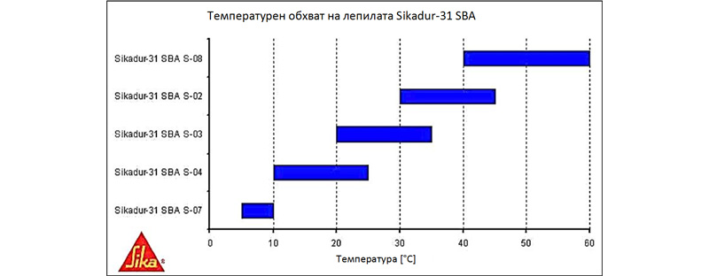 Графиката по-долу представя общ преглед на температурния диапазон на лепилата Sikadur®-31:
