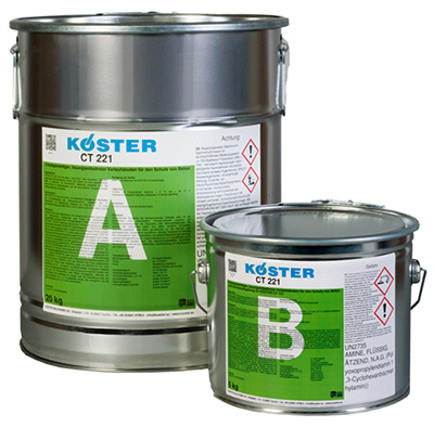 Кьостер CT 221 е твърдо, двукомпонентно саморазливно подово покритие за защита на бетона без разтворители. Устойчиво е на големи механични и химични натоварвания и се използва, за да предпази бетона от евентуално напукване. Кьостер CT 221 е саморазливно покритие, съвместимо с редица посипки от различен тип. Използва се за предпазване на бетонови повърхности, разположени в зони, подложени на интензивен трафик в интериорни помещения (цехове, където се движат мотокари, паркинги и др.)