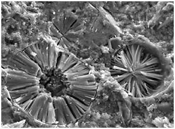 Увеличение в една бетонна пора с нанокристали