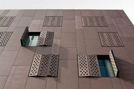 Широкоформатните fibreC фасадни плоскости са тънки точно 13 мм и предоставят на архитектите богати възможности за индивидуален фасаден дизайн.