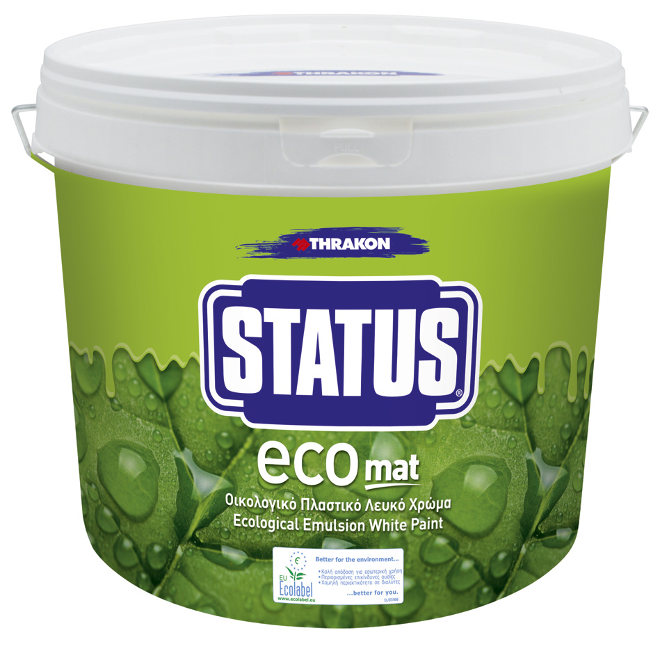 Status Eco Mat – екологична, миеща се, емулсионна матова боя, без мирис и вредни вещества. Притежава лесна обработваемост и отлична покриваемост, висока износоустойчивост и паропропускливост.