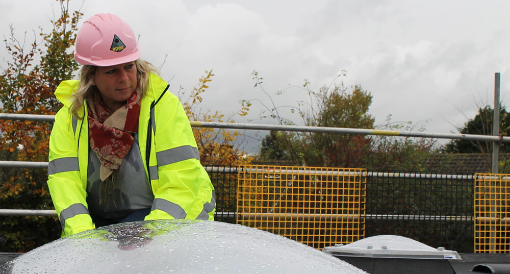 Директорът на Apex Roofing, Джаки Бисуел, заяви: „Радваме се, че сме номинирани в категорията“ Жени в строителството“, част от строителните награди на Лондон през 2018 година.