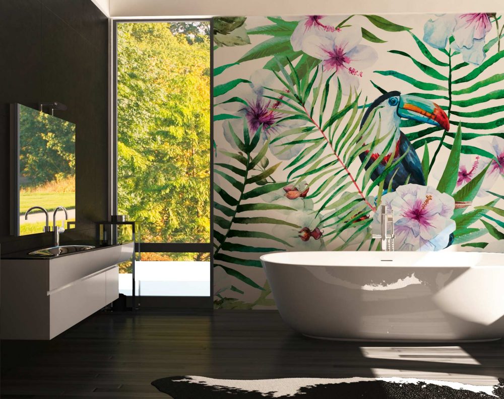 Тенденцията в стил джунгла съществува от много години – тапетите с мотиви на огромни листа са част от нея. Все по-често между листата се наместват и животни като папагали, маймуни, тигри и леопарди. Комбинациите от нюанси на зеленото не натоварва окото, така че свободно може да избирате между многообразието от мотиви и шарки.