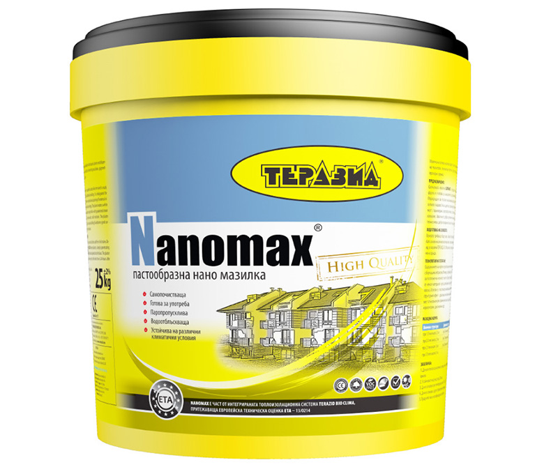 Тази мазилка е трудно податлива на замърсяване и е устойчива на всякакви климатични условия, благодарение на иновативната си наноструктура. NANOMAX притежава изключително високи водоотблъскващи свойства и паропропускливост.