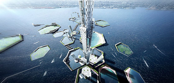 Две компании, Kohn Pedersen Fox Associates  и Leslie E. Robertson Associates, обединиха сили и показаха бреговата линия на Токио, която ще се появи през 2045 г. Нивото на водата ще се увеличи толкова високо, че градът скоро ще прилича на Дубай.