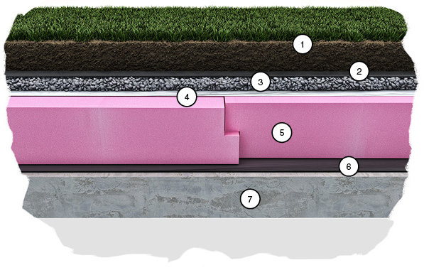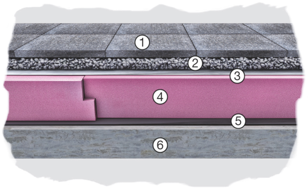 Този начин на изпълнение на обърнатия покрив е устойчив на високи натоварвания и намира приложение навсякъде, където трябва да се осигурят паркоместа и проходимост за пътни и товарни превозни средства. В тези случаи се препоръчва използването на изключително устойчивите на натиск изолационни плочи Austrotherm XPS TOP 50 или Austrotherm XPS TOP 70, които притежават допустимо натоварване на натиск от до 25 t/m². Крайната настилката може да бъде от павета, бетонни плочи, армиран бетон и др.