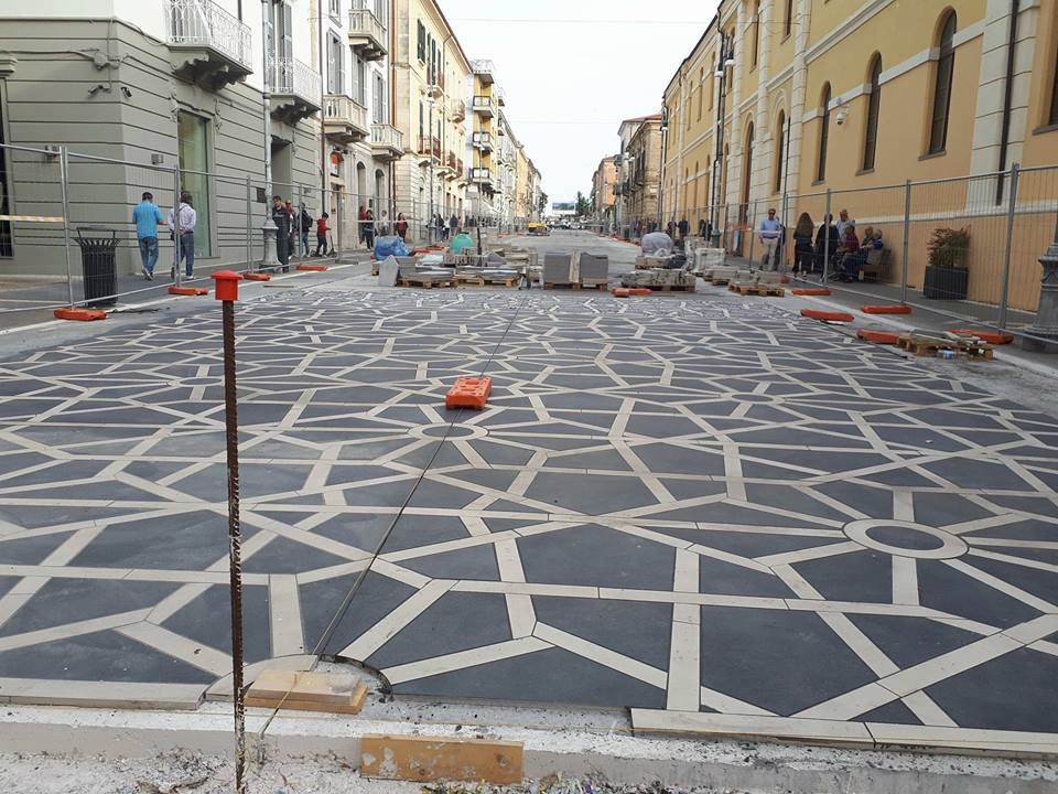 Току-що ремонтираната главна улица в Lanciano, малко градче с 35 000 жители по Адратическото крайбрежие на Италия. Уникален пъзел, в който всяко едно парче е изрязано поотделно и номерирано.
